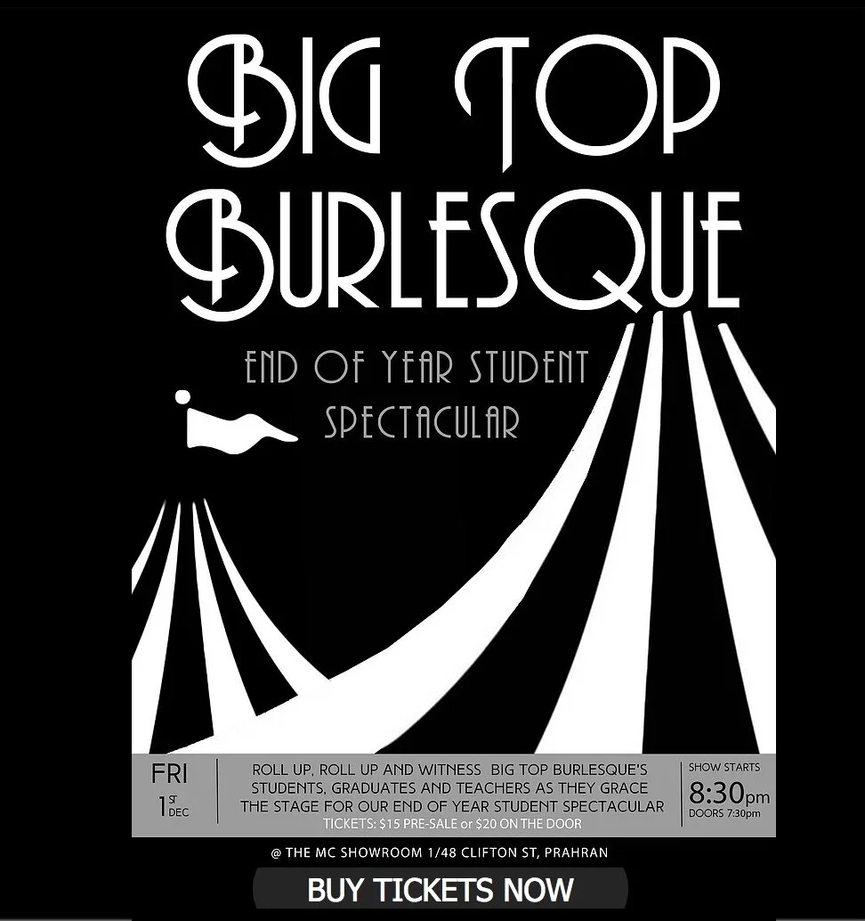 Roll up, Roll up! And witness Big Top Burlesque’s students, graduates and teachers as they grace the stage for the end of year spectacular!