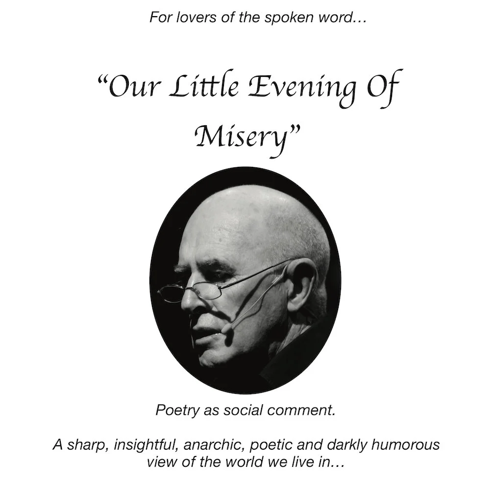 “Our Little Evening Of Misery” is a collection of songs, poems, parables, monologues and stand up, dealing with the everyday situations which define our society and the world we live in.